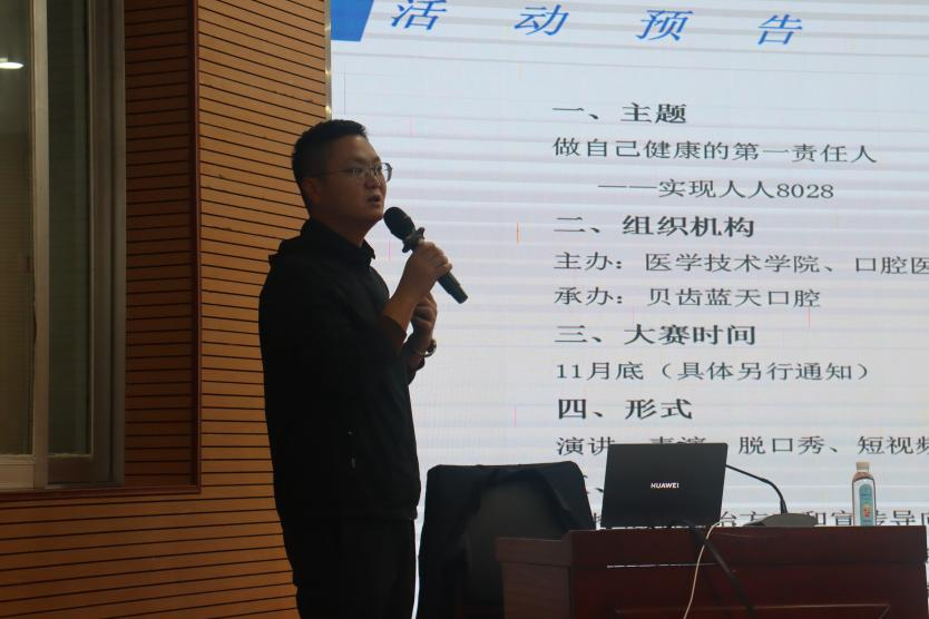 讲座中贝齿蓝天口腔医院蔡绍祥院长以口腔健康为切入点,向大众传递科学健康理念与健康生活方式。针对学生群体,建议大家打破专业局限,以更广阔的视野关注行业发展,关注口腔卫生技师等新兴职业方向,有效缓解职业焦虑。杨锋主任以 “做自己健康的第一责任人,实现人人 8028” 为主题,鼓励同学们通过演讲、脱口秀、短视频等多种形式,向社会大众普及口腔健康基本知识。谢红玲医生则聚焦成人常见口腔问题,结合临床案例详细讲解了口腔护理的核心要点与实用方法,帮助师生掌握科学护牙技巧。